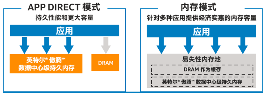 英特尔®傲腾™持久内存200系列具有两种工作模式:内存模式(MM)和App Direct 模式(AD)。