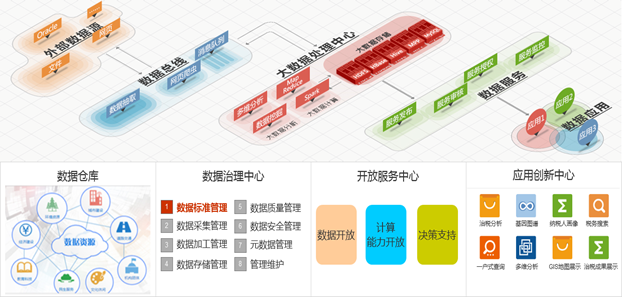 大数据综合治税系统整合税务部门业务系统数据、第三方涉税数据、日常管理情报数据、互联网涉税数据和其他来源的涉税数据,建设全局共享的大数据服务管理平台,具有涉税数据“大集中”,数据管理“大平台”,数据服务“大开放”,数据应用“大创新”的特点,有效支持税收数据分析挖掘。