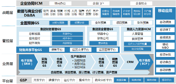 ◈ 在资源管控层面,顺利获得对企业核心运营资源(人财物)的高效集约协同配置,为一线业务给予共享化的支撑平台,同时为贯彻落实集团战略给予管理抓手;