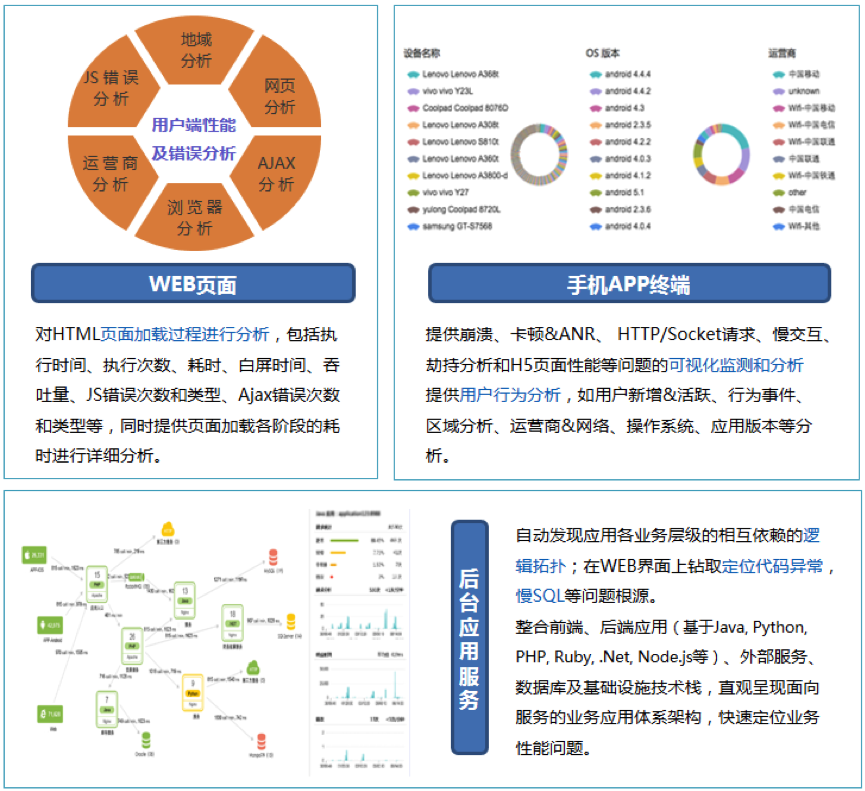 应用质量管控,贝斯特全球奢华应用质量管控系统给予对应用全生命周期和全事务过程的质量托管。从用户终端、后台服务到IT设备层的端到端全程监控;应用性能劣化预警;应用性能分析与根原因定位;用户体验分析和问题过程回放;用户活性分析、转化率分析;